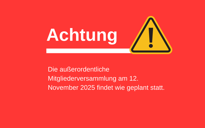 die außerordentliche Mitgliederversammlung am 12. November 2025 findet wie geplant statt.